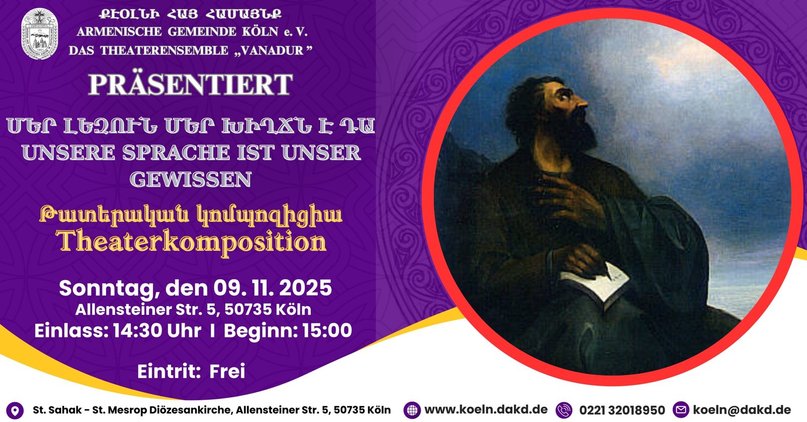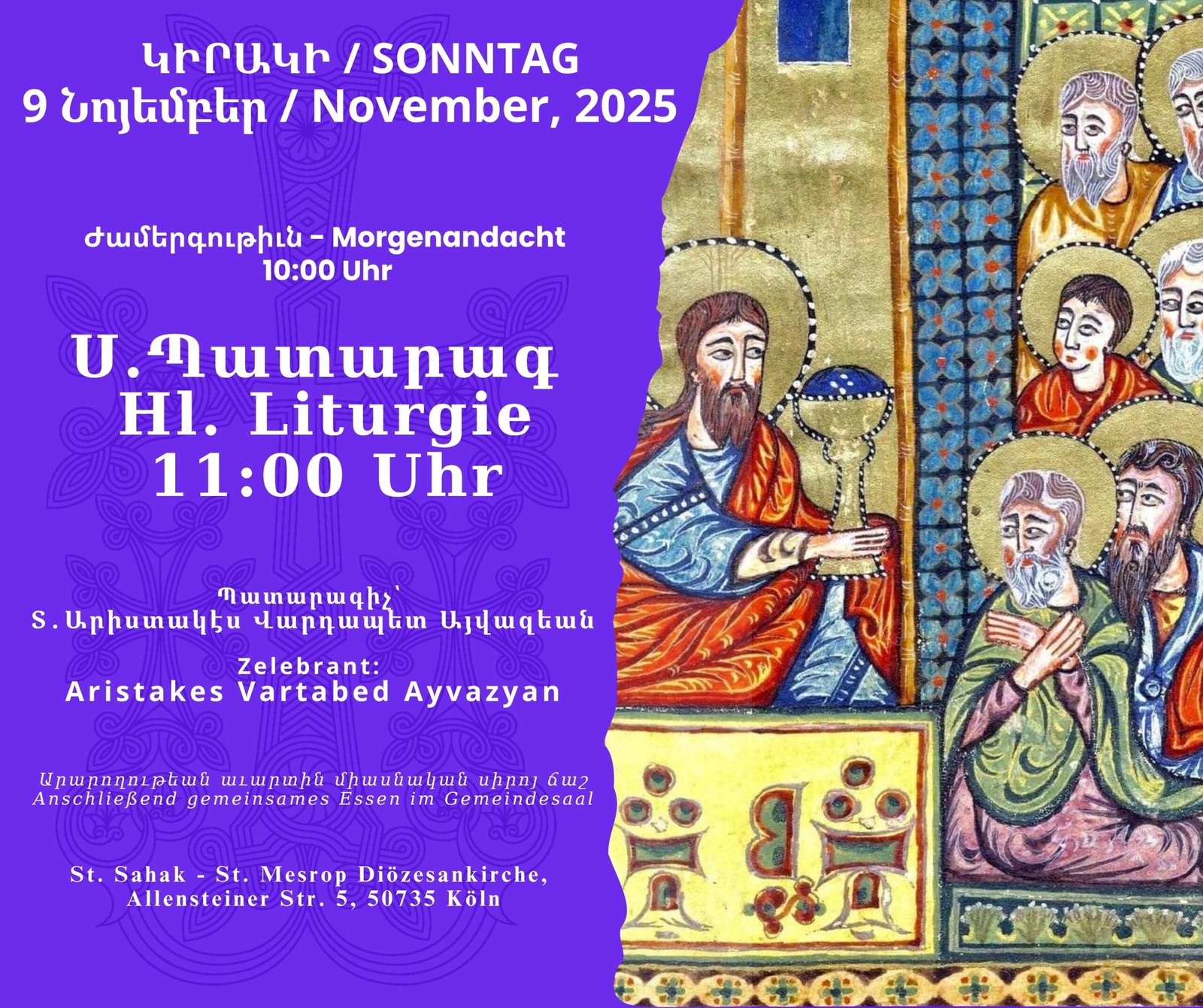 Հոգեւոր զրոյց / Geistliches Gespräch koeln2025-03-13T14:08:30+01:00März 13th, 2025|Aktuell| Teilen Sie diesen Artikel! FacebookXRedditLinkedInWhatsAppTumblrPinterestVkE-Mail Ähnliche Beiträge Թատերական կոմպոզիցիա Theaterkomposition Gallerie Թատերական կոմպոզիցիա Theaterkomposition November 4th, 2025 Ս.Պատարագ Hl. Liturgie Gallerie Ս.Պատարագ Hl. Liturgie November 4th, 2025 Սբ.Պատարագ / Hl. Liturgie, Տօն Գիւտ Սբ. Խաչի Fest der Auffindung des Hl. Kreuzes Gallerie Սբ.Պատարագ / Hl. Liturgie, Տօն Գիւտ Սբ. Խաչի Fest der Auffindung des Hl. Kreuzes Oktober 22nd, 2025 ԵՊԻՍԿՈՊՈՍԱԿԱՆ ՍՈՒՐԲ ՊԱՏԱՐԱԳ ԵՒ ՄԱՏԱՂՕՐՀՆՈՒԹԻՒՆ ՔԷՕԼՆԻ ՀԱՅ ՀԱՄԱՅՆՔՈՒՄ Gallerie ԵՊԻՍԿՈՊՈՍԱԿԱՆ ՍՈՒՐԲ ՊԱՏԱՐԱԳ ԵՒ ՄԱՏԱՂՕՐՀՆՈՒԹԻՒՆ ՔԷՕԼՆԻ ՀԱՅ ՀԱՄԱՅՆՔՈՒՄ Oktober 13th, 2025