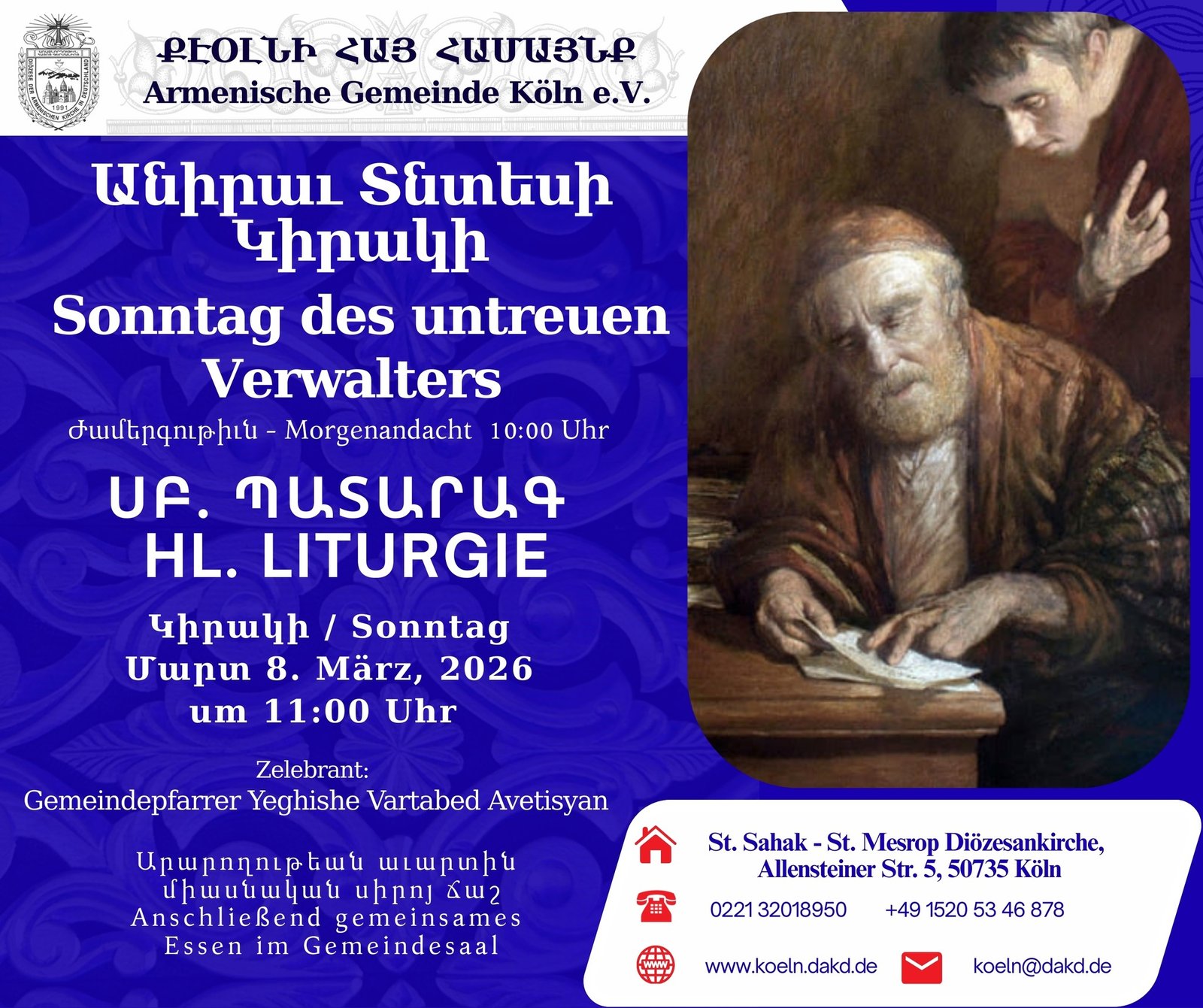 Սբ. Պատարագ Hl. Liturgie Անիրաւ Տնտեսի Կիրակի Sonntag des untreuen Verwalters