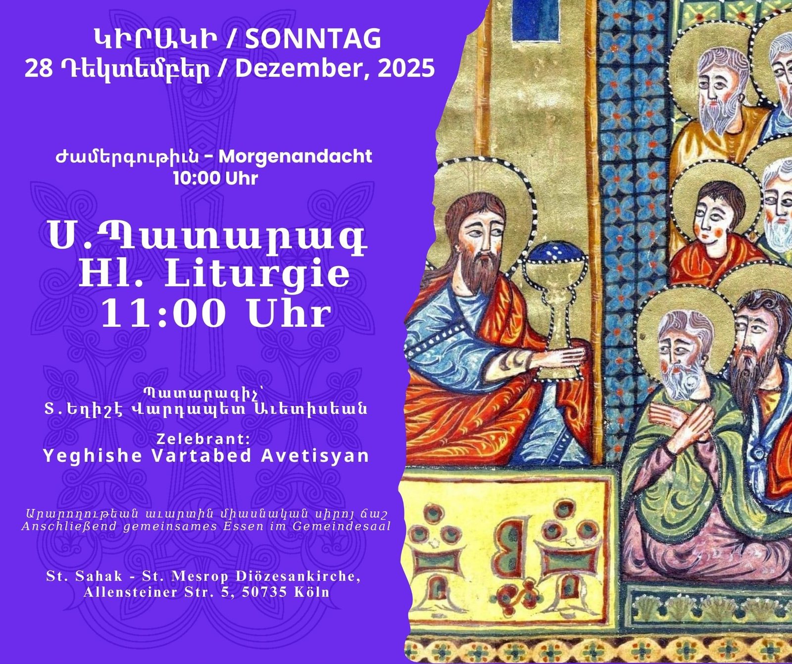 Die Diözese der Armenischen Kirche in Deutschland möchte unseren Schwestern und Brüdern in Arzach ihre moralische und materielle Unterstützung leisten und ruft eine Spendenaktion aus. Ihr könnt Eure finanzielle Unterstützung entweder über Facebook bzw. per Überweisung auf das u. s. Konto leisten: