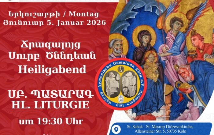 Սուրբ Ծննդյան ուրախություն 2025 Weihnachtsfreude 2025: Հույս նվիրել Hoffnung teilen Die Diözese der Armenischen Kirche in Deutschland lädt mit der Aktion „Weihnachtsfreude 2025“ zum Mitmachen ein. Start der Aktion ist am 1. Hisnak, 16. November 2025. […]
